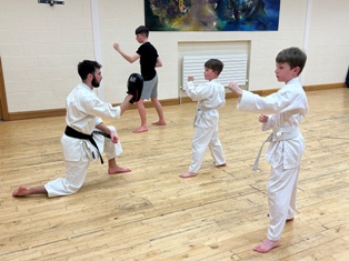 Our new members getting an introduction to Karate